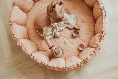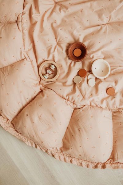 Our Organic Bloom! This unique 3-in-1 playmat grows with your child, transforming from a safe lounging crib for newborns to a comfy playmat for tummy time and exploration.Keep your child's favorite toys organized and within reach.